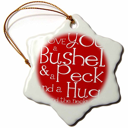 3dRose orn_193475_1 I Love You a Bushel and a Peck. Red-Snowflake Ornament, Porcelain, 3-Inch