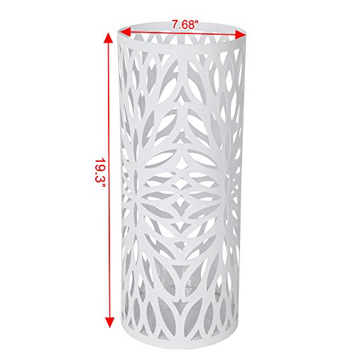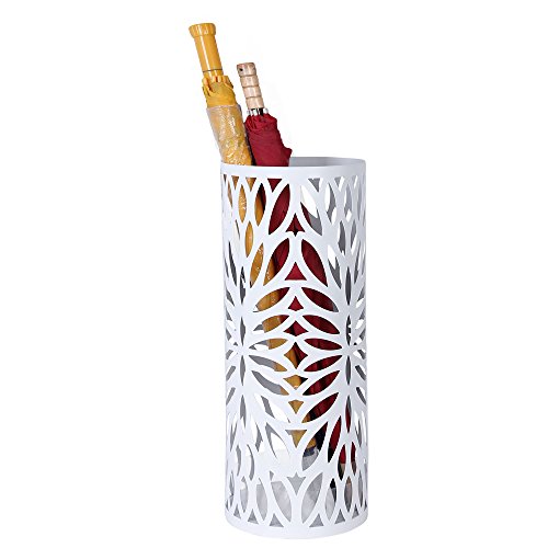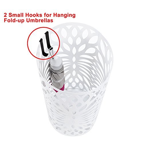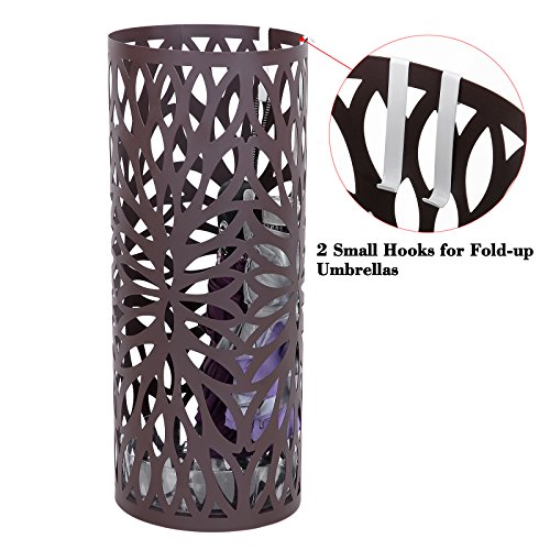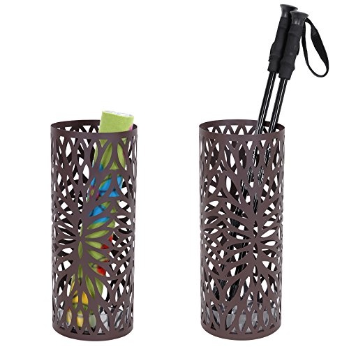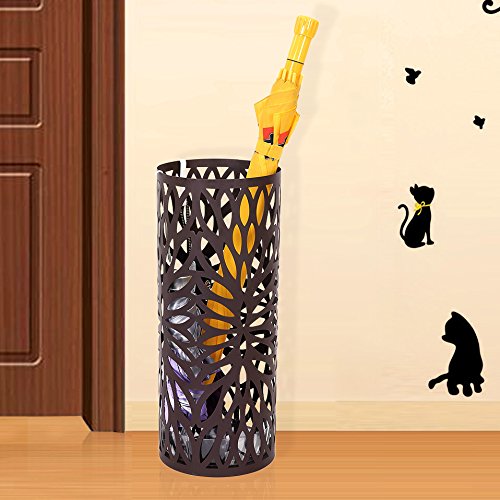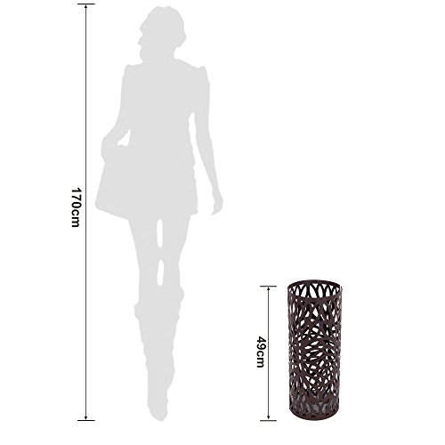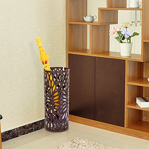 Studio : Songmics Publisher : Songmics Binding : Kitchen Product Description The Songmics Round Brown Umbrella Stand offers you a fashionable and functional way for your home and office to store wet and dry umbrellas, walking sticks and wrapping paper, swords, baby toys, etc. Its round shape makes it easy to be tucked away in corners or at entrances without adding clutter to your home or office. A bottom drip tray has been designed to protect your floor from water, especially wooden floors. 2 extra small hooks for hanging fold-up umbrellas. It can concurrently hold at least 4 long and 2 short umbrellas. With this practical eye catching umbrella stand, there is no need anymore that you find anywhere for an umbrella when it rains, or your family throw the wet umbrellas everywhere when get home from outdoor. This is just the d¨|cor which can help you make an organized home and a comfortable life. Specifications: - Material: Iron - Assembly: No Need - Product Dimension: 7 5/8"L x 7 5/8"W x 19 1/4"H (19.5 x 19.5 x 49cm) - Product Weight: 3.3Lbs (1.5 Kg) - Shipping Weight: 5.6Lbs (2.54 Kg) Shipping List: - 1 x Umbrella Stand - 1 x Drip Tray - 2 x Hooks (random color allocated) 0