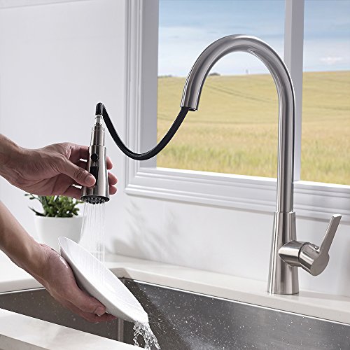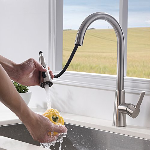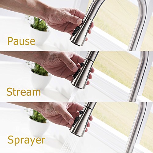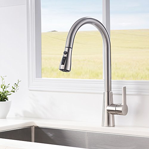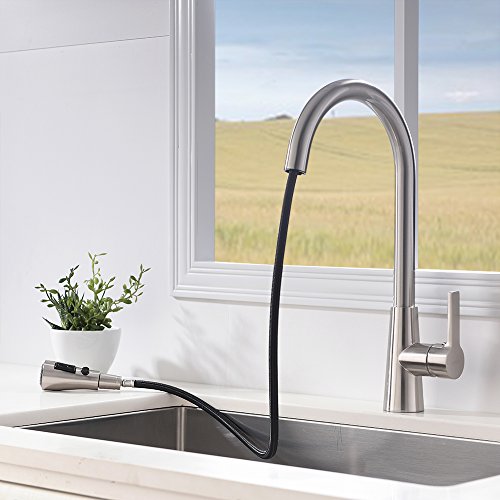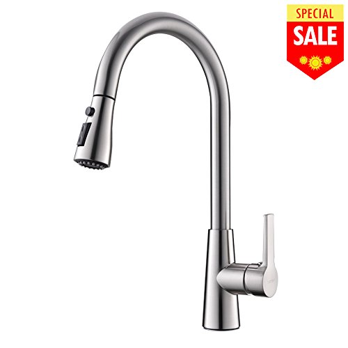 VESLA HOME Commercial Single Level Stainless Steel Pull Out Kitchen Faucet,Brushed Nickel Kitchen Faucets with Pull down Sprayer