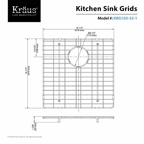 KRAUS KBG-103-33-1 Stainless Steel Bottom Grid for KHU103-33 Left (Large) Bowl 33” Kitchen Sink, 16 1/2” x 16 1/2” x 1 3/8”
