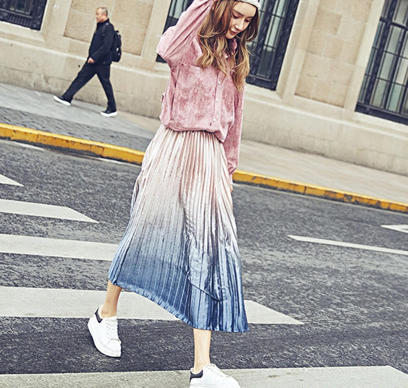 ♢素材♢ グラデーションがキレイなプリーツスカートです。 周りと差がつくコーデができます♪