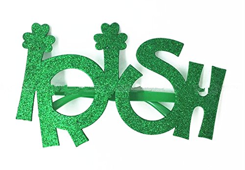 -. Feature : Color&Material: Green as pictures show, the sunglasses made of high quality plastic. / Size: One size fits most children and adults, recommended for ages 6 and up! / Design: Funny cute features the large glittered letters read "IRISH" design with no lens glasses, make you look more cute and adorable. A great accessory for any novelty Shamrock costume. / Occasions: Perfect for a St. Patrick's Day party, photography props, green themed party, Irish parade and so on. / Package: 1pcs St. Patrick's Day Glasses