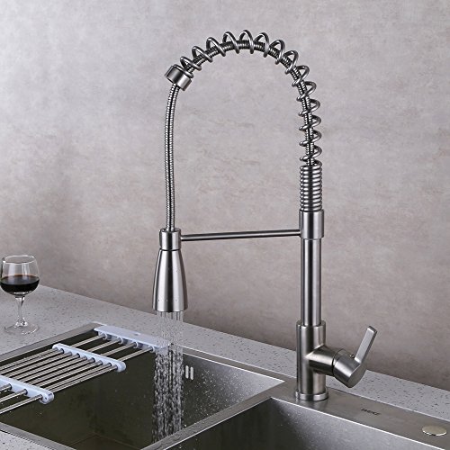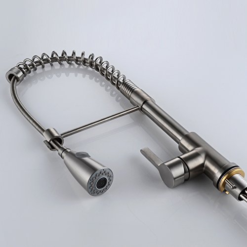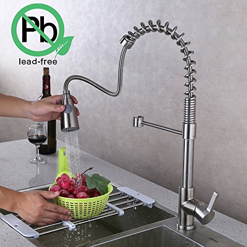 KES Lead-Free Brass Pull Down Kitchen Faucet with Swivel Spout Single Handle High Arc Spring Brushed Nickel, L6907LF-2