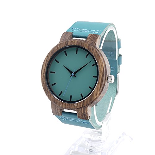 -. Title : BOBO BIRD C28 Mens Unique Causal Wood Watches Zebra Wooden Watch with Blue Leather