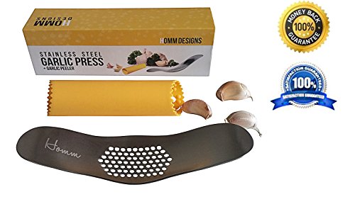 Homm Stainless Steel Garlic Press Crusher Mincer Rocker with New Improved Peeler with Dimples Set