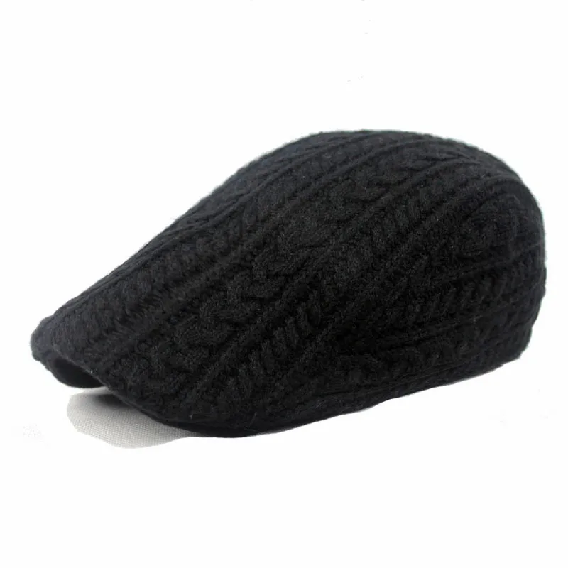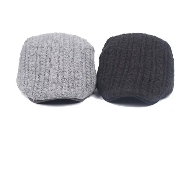 | [해외]겨울 스타일 니트 두꺼운 따뜻한 모자 블랙 그레이 남녀 Gorras Planas 베레모 플랫 모자 남성과 여성 |