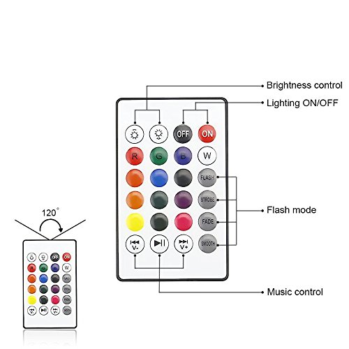 - 13 colors changing and 4 lighting modes with remote control. You can choose the colors,lighting mode,lighting on/off and brightness control through IR remote. During play music connect with your device via Bluetooth, you also can choose the pause/play, volume up/down, next/previous song through the remote control.