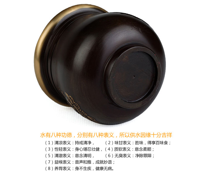 ? ?Product introduction: Water has eight?merits,?there are?eight semantic,?so?water?is veryauspicious?karma: (1)?cool?meaning:?Sila?clean,?(2)?sweet?meaning:?Sheng?taste,?enjoy thetaste of?food; (3)?light?table righteousness:?physical and mental?suffering?health,?(4):soft?soft?semantic?ideas; (5)?the clear?meaning: the mind?clear,?(6):?odorless?semantic?net?besidesthe sin; (7)?throat benefiting?table righteousness:?sound?and elegant?wit,achievement; (8)?effects of?semantic:?no?disease,?no health?disease. Because water?is easily obtained?and the economy,?so the?water supplyis the accumulation of?merit,?the elimination of?a good?method of?greed.Secondly,?water represents the?null?character,?can?manifest anything,but the essence?is empty,?has the?characteristics of?uncertainty.Therefore,?water?is not easy to?build. [note]?cup?for?St. (1),?every brush?for?cup,?to thoroughly?clean.?When cleaning,?can bethought?in a net?two obstacles?in addition to their own?and?all. (2),?if there is a?sweet,?can first?incense,?and then?for the?cup?in thefragrant?smoked?above,?to purify?for?cup?for?cup,?then?stacked?together. (3),?water supply?should?fall?to about?one?cm?distance?from the cup?edge,and should not be?full.?This can avoid the?charge?for?cup?splashed?table. ? ? ? ? ? ? ? ? ? ? ? ? ? |