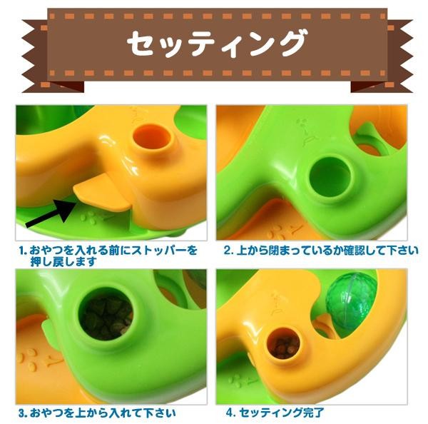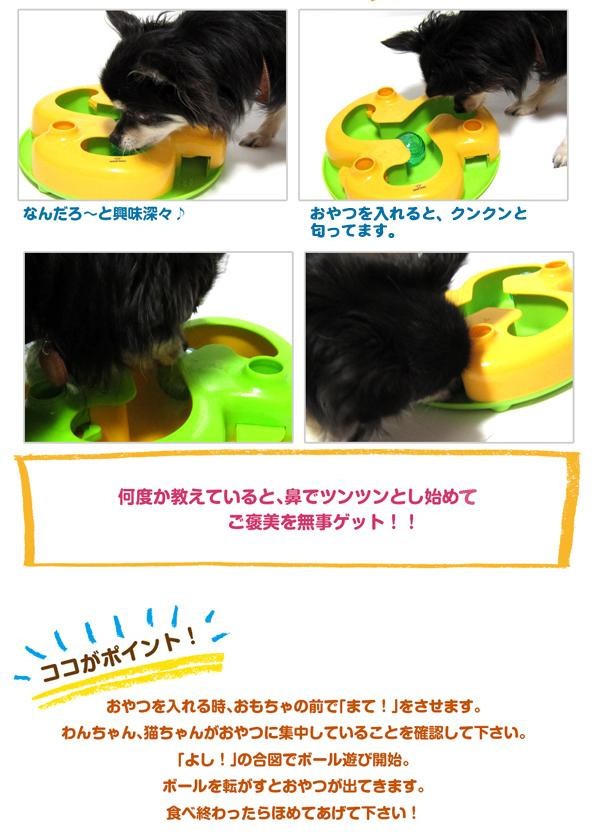 | ボールを右へ左へ転がしてストッパーを内側から押すことでご褒美をゲット!!飼い主と愛犬、愛猫の絆を深め、遊びながら学習できるデザインになっております。運動不足の解消やストレス発散にもピッタリ♪ |