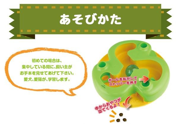 ボールを右へ左へ転がしてストッパーを内側から押すことでご褒美をゲット!!飼い主と愛犬、愛猫の絆を深め、遊びながら学習できるデザインになっております。運動不足の解消やストレス発散にもピッタリ♪ |