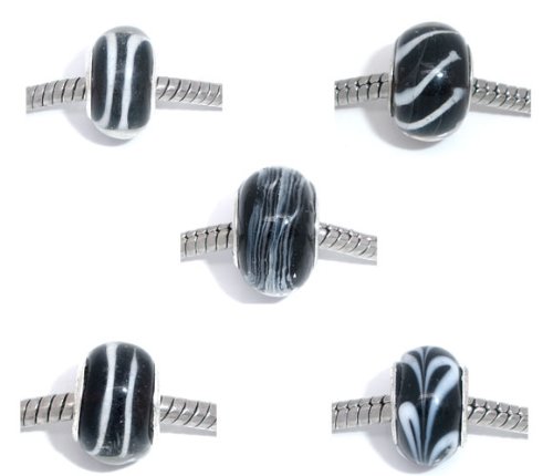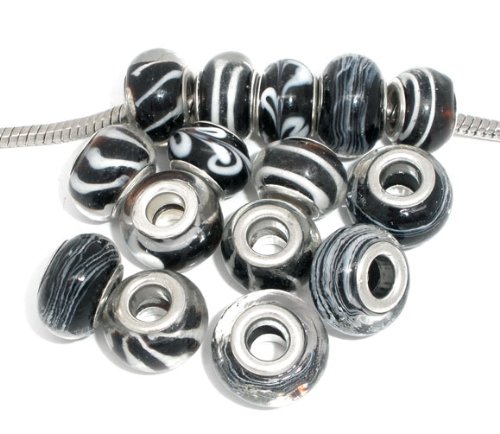 Ten Pack of Assorted Black & White Glass Lampwork Murano Glass Beads For Snake Chain Bracelets