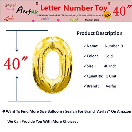 Aerfas 40 Inch Letter Balloons, Gold A-Z Letter And 0-9 Number Aluminum Foil Balloons For Party Decoration Supplies,Can Be Float With Helium, ( Number 0 )