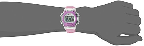 32mm white plastic case, durable pink polyurethane strap, 165ft water resistant, easy push button functions