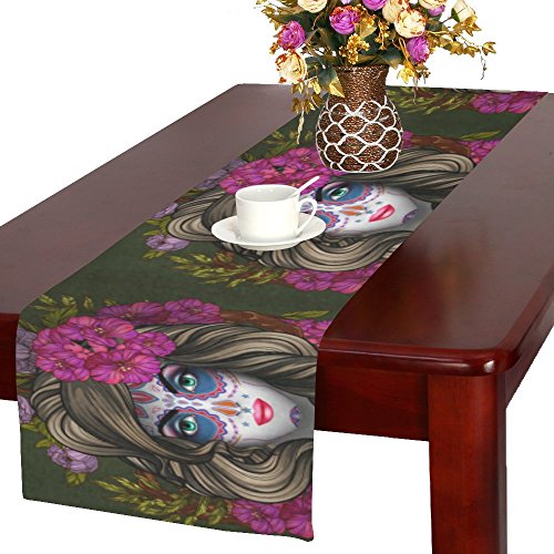 -. Title : your-fantasia Day of the Dead Sugar Skull Flowers Cotton Linen Table Runner