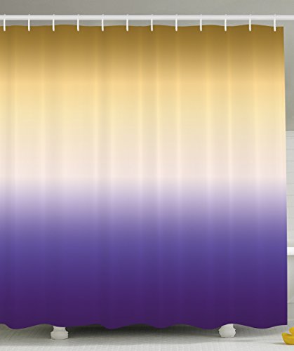 Ombre Shower Curtaian Art Bathroom Decor by Ambesonne, 70 Inches Long Home Decorations, Polyester Fabric Shower Curtain Set with Hooks, Ombre Colorful Design Mustard Cream Purple