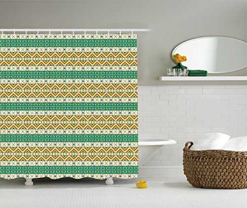 Native American Decor Shower Curtain Set by Ambesonne, Colorful Navajo Striped Pattern Ancient Tribal Prints, Fabric Bathroom Decorations with Hooks, 75 Inches Long, Green Orange White Aquamarine