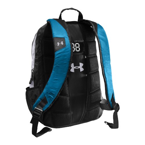 A super-durable backpack large enough to carry all your gear and then some Custom card for team number or initials Space for team customization Adjustable, padded shoulder straps deliver comfort and secure fit Interior shoe bag for maximum organization Dual side mesh pockets for water bottles or other need-to-grab stuff A variety of bold colors and front-and-center UA logo add style Dimensions: 18 x 12.75 x 9.25 Cubic Volume: 2100 Polyester/Nylon