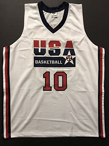 Autographed/Signed Clyde Drexler Team USA Olympics White Basketball Jersey JSA COA