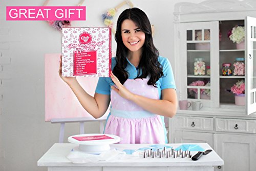 - ✅ PREMIUM FEATURES This deluxe decorating kit is the ideal, complete set for a professional or beginner pastry decorator. From kids to a professional baker, this set supplies all the tools you might need and makes baking and designing a cake fun and easy. The non-slip ring turntable is designed to keep your cake from sliding, helping your creation stay intact and keeps your kitchen clean.