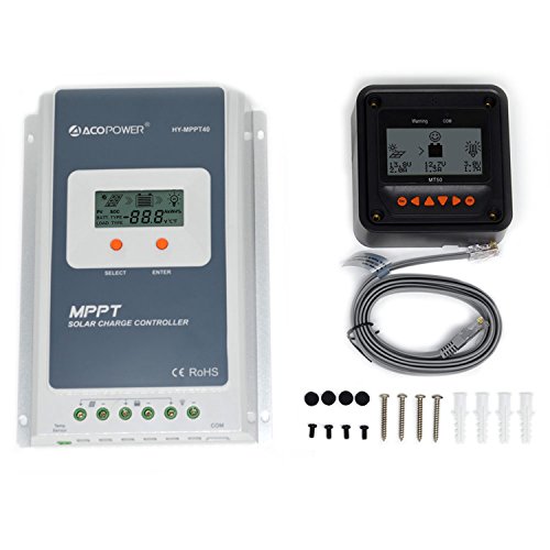 ACOPOWER 40A MPPT Solar Charge Controller HY-MPPT40A+ Remote Meter MT-50 Solar Charge With LCD Display for Solar Battery Charging