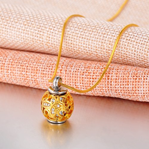 High quality TOP-SELLING Cremation Urn Pendant Necklace.You can place a small amount of hair,cremains,love token, perfume,dried flowers or anything meaningful and important.A funnel kit(color is randomly) included to help you place them more convenient.