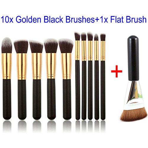 Package included: 10pcs Golden Black Brushes + 1pcs black flat makeup brush