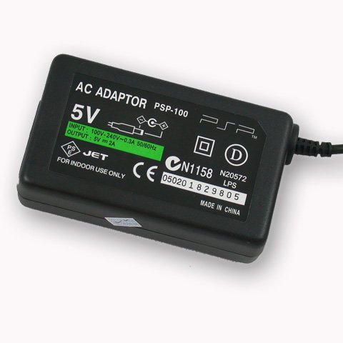 Part Number: PSP-100 Never worry about running out of power with the PSP AC adapter. This PSP AC adapter works on all models of PSP, including the PSP-1000, PSP-2000, and PSP-3000 series. This PSP AC adapter has an IC chip that recognizes when the battery is fully charged and automatically switches to a "saver mode" to protect against overcharging and short circuit. Great for replacing an old PSP AC adapter or keeping as a spare! Input Voltage : AC 100V - 240V 50/60HZ Ouput Voltage : DC5V 2A
