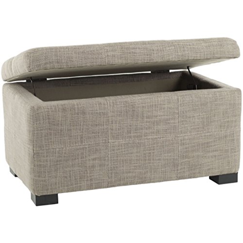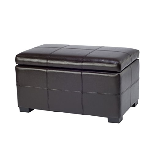 -. Feature : Sturdy wood frame and bi-cast leather / Sleek brown upholstery / Contemporary style / Features decorative stitching and hidden storage / Dimensions: 30W x 18D x 17H in.