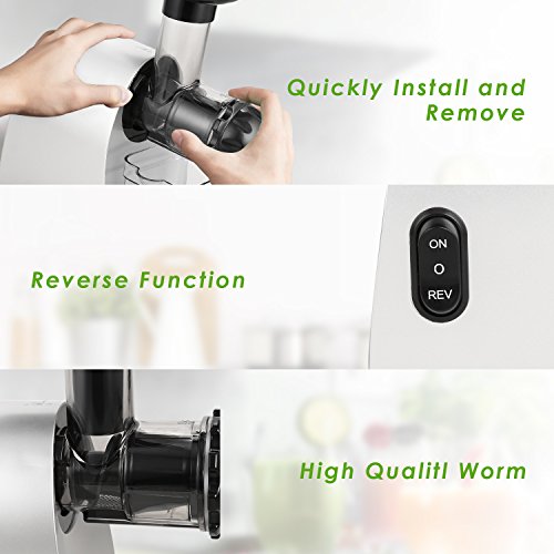 Easy to clean:.A cleaning brush help the Masticating Juicer more easy to clean.ETL,GS,ROHS,CE certification,BPA free that make you happy to use