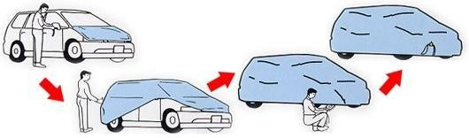 | ●簡単着脱!愛車を守る毎日の作業だから、お一人でも簡単にかぶせることが出来ます。 | | ●風に強い!簡単な作業で、風でボディカバーが飛ばされないようにすることができます。 |