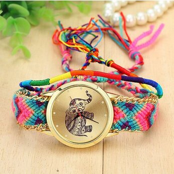 -. Title : New Brand Handmade Braided Elephant Friendship Bracelet Watch Geneva Watch Ladies Quarzt Watches