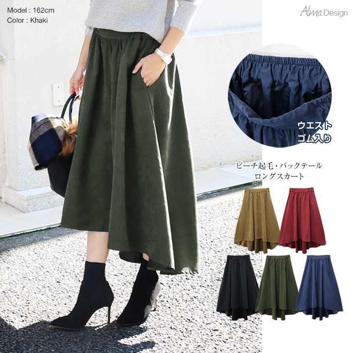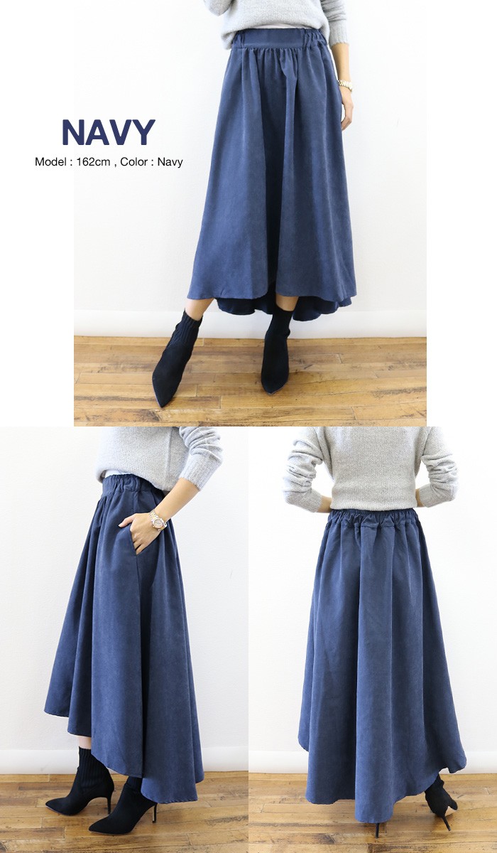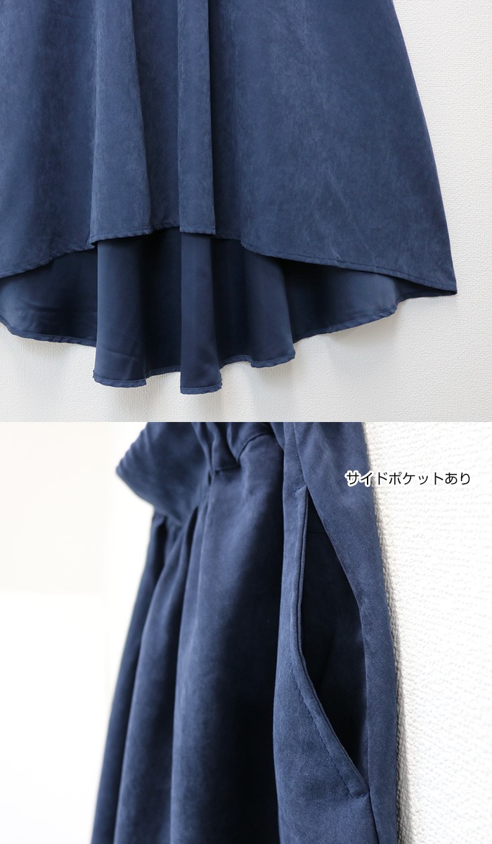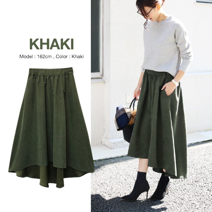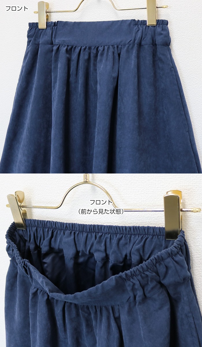 程よい丈感で、脚の細いところだけ部分見せしてくれる大人女子の味方!!やや薄手でさらっとした落ち感のある素材感、後ろウエストはゴム入りで楽ちんです♪サイドポケットありで便利なのもポイント!ニットやツイードと異なり、毛玉を気にせずガンガン穿けるのがポイントです♪裏地なし:生地の裏側はつるっとした素材ですべりのよい着用感です。MODEL:身長158cmMODEL:身長162cm