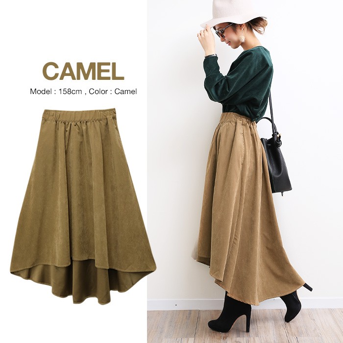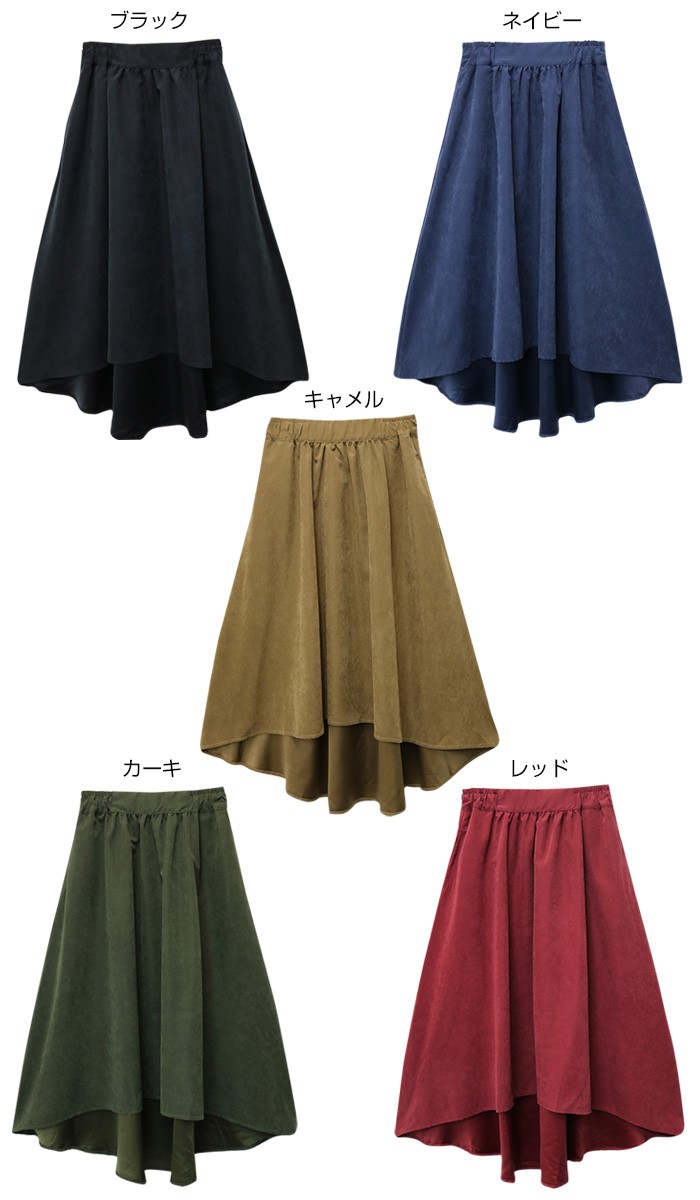 | 実寸 | 着丈:(前)72cm(後)87cm ウエスト:33cm(ゴム有) ヒップ:64cm 裾幅:120cm |