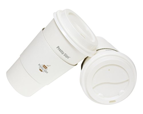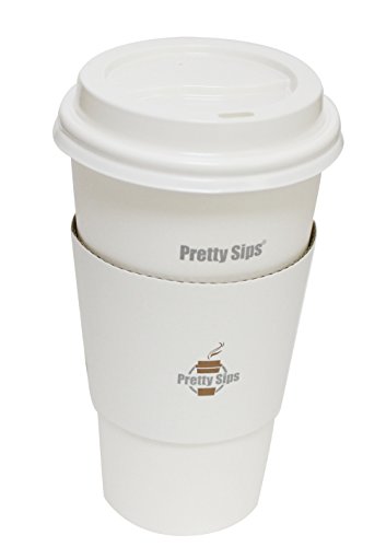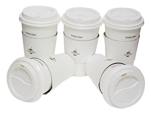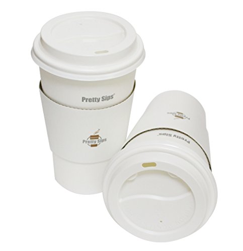 50 Pretty Sips Eco-friendly White Paper Hot Cups with Cappuccino Lids and Cup Sleeves, 16 oz. (50)