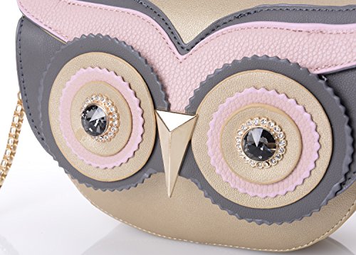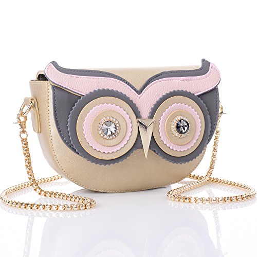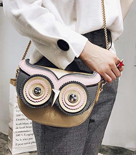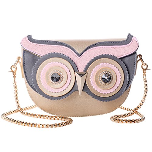 - [ITEM SPECIFICS] Beautiful streamlined stitching outside and fully lined interior with polyester. 3d metal beak and twinkling eyes create vivid 3D Owl figure effect. Magnetic snap closure. The interior contains one open slots for keys/phone/cards. Comes with a detachable gold metal shoulder strap, 3 ways to carry: handbag/crossbody/single shoulder bag. Girls can take this to go to party, travel, work, go shopping and playing. It is a best gift to your friend and yourself.