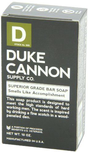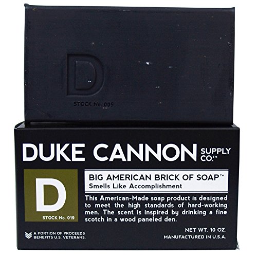 Duke Cannon Men’s Soap Brick - 10oz. Big American Brick Of Soap - Smells Like AccomplishmentWe All Know That Size Matters - Especially When It Comes To Soap. Being Three Times The Size Of Regular Soaps Means That Duke Cannon's Big American Brick Of Soap Is Going To Last A Lot Longer Than Most Competition. It’s Triple Milled For Highest Quality, And Has Steel Cut Grains For Texture And Exfoliation (Manly Gripability). Duke Cannon’s Big American Brick Of Soap Is Modeled After Soap Used By GIs In The Korean War, And Are Field Tested By Active Duty U.S. Soldiers. Perfect For Everyday Masculinity, Or A Gift Every Man Will Actually Love. Made In The U.S.A. With A Portion Of Proceeds Supporting Veteran’s Causes.