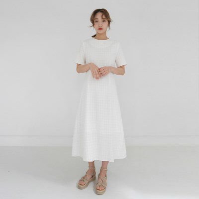 자연스러운 주름이 느껴지며 라이트 한 두께감의 소재로 간편하게 착용하기 좋아 여름 시즌까지 쭉 활용할 수 있는 아이템입니다. 퓨어한 화이트 색상에 체크 패턴으로 많은 디테일 없이도 심심하지 않아 단독으로도 충분하며 단정한 느낌의 라운드넥과 허리라인을 잡아주는 웨이스트 드레이핑 디테일로 슬림하게 연출되며 살짝 퍼지는 플레어 라인이 여성스러운 느낌입니다. 과한 감 없이 드레시한 무드를 어필하기 좋은 아이템으로 소재 특유의 내추럴한 느낌이 매력적으로 다가오는 제품입니다. 색상 특성상 약간의 비침이 있을 수 있으니 참고 부탁드립니다.