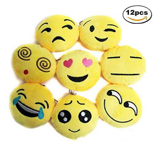 -. Title : JIAHUI 12 Pack Toy Key-chain 3 Inch Mini Emoji Plush,Party Favor Pillows Toys