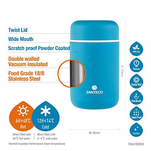 Double-wall food grade 18/8 stainless steel vacuum insulation construction prevents the temperature on the outside from transferring into the container. Keeps food hot up to 6 hours and cold up to 12 hours .