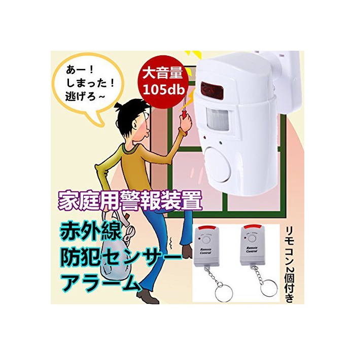 JNL RETAIL STORE Yihiro 방범 알람 적외선 센서 가정 시큐러티 105dB 대음량 자택/창고/개러지/점포 의 방범 에 리모콘 2 개부착