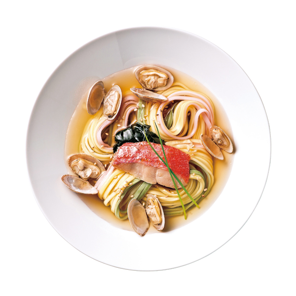 ●北海道産昆布と枕崎産かつお節と九州産のさば節で海の風味を利かせただしスープです。大地の恵みと海の幸が口の中に広がる、心にもカラダにもやさしい味の、うどんのセットをご用意しました。