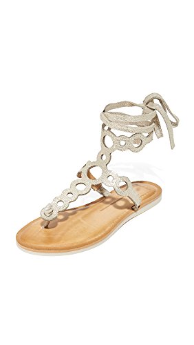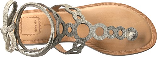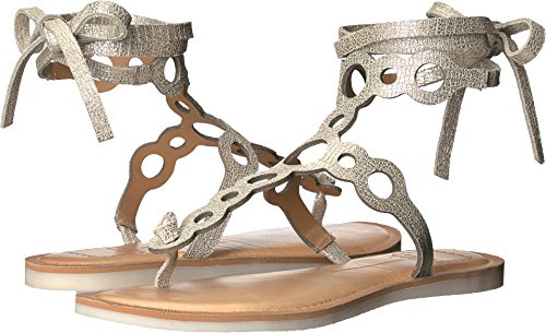 Product DescriptionCrackled metallic leather lends a glamorous feel to these cutout Dolce Vita sandals. Tie closure at ankle. Padded footbed and flexible crepe sole.0