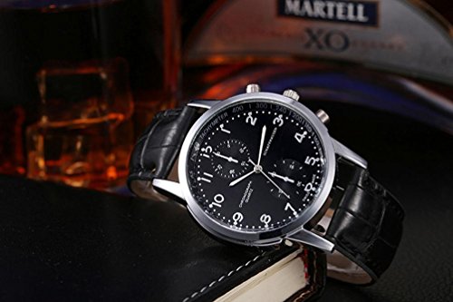 -. Feature : ☆ Color: Black / ☆ 100% brand new and high quality. / ☆ Material : PU ☆Movement: Quartz / ☆ Case Diameter: about 44mm Case thickness: about 14mm Water Resistance Depth: 50 m Band Length: 23 cm / Package Content: 1PC New Unisex Leather Stainless Steel Dial Quartz Wrist Watch (without retail package)
