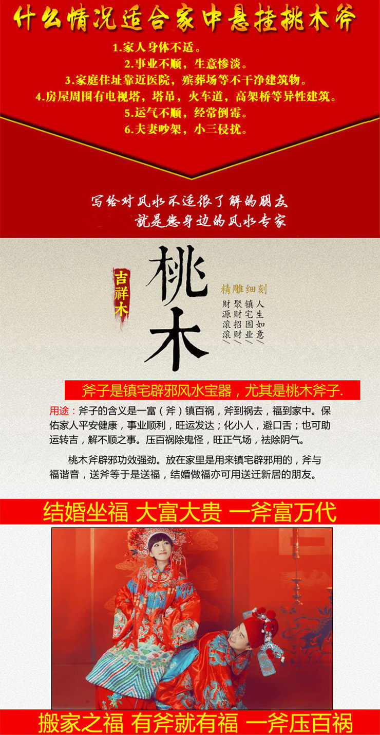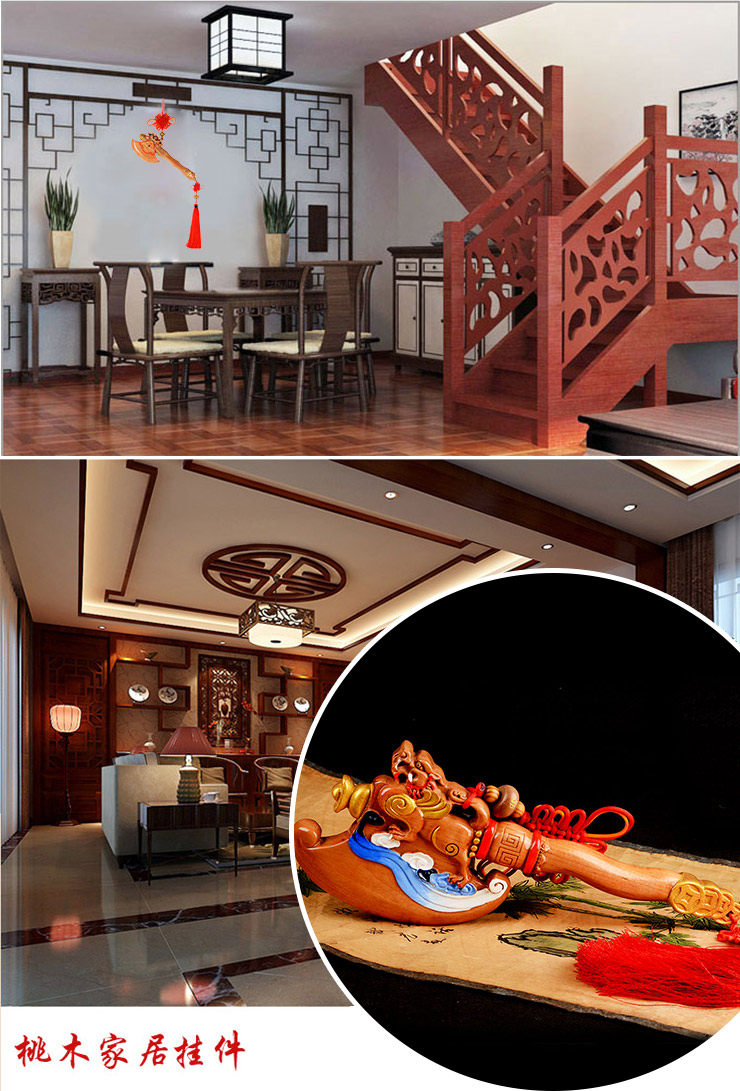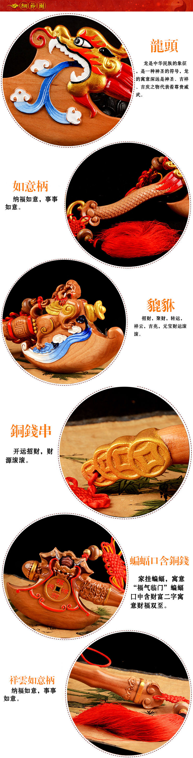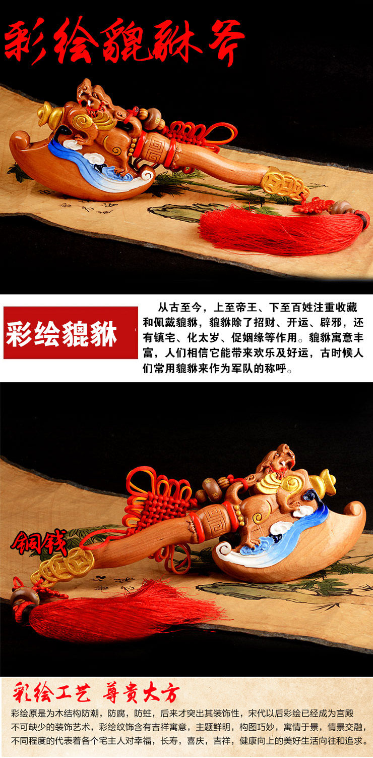风水桃木斧子精雕彩绘龙头蝙蝠貔貅木雕挂件