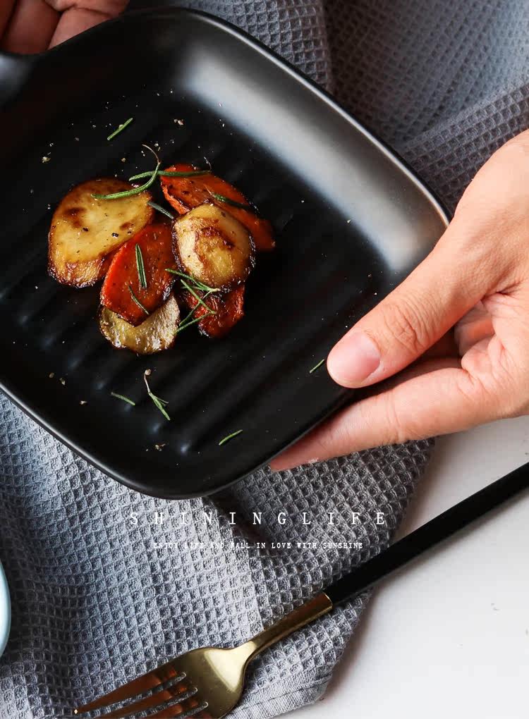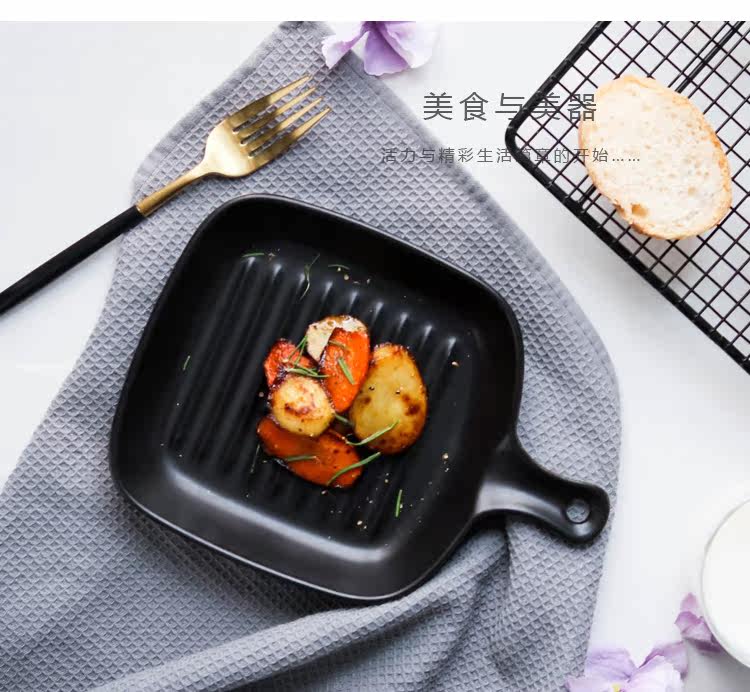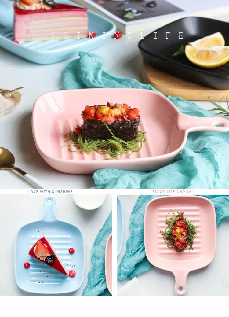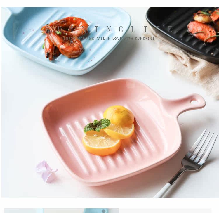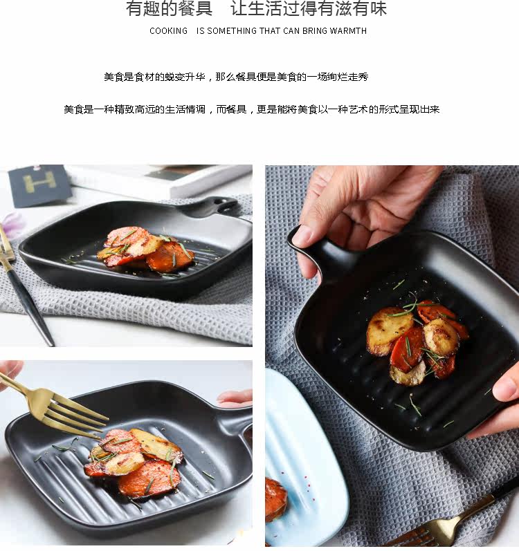 创意烘焙盘子陶瓷烤盘焗饭盘 北欧早餐盘意面盘带把手柄盘 摆拍盘