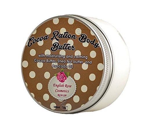 -. Title : English Rose Cosmetics Cocoa Ration Body Butter in Clear Plastic Jar with Retro Aluminium Lid 200ml