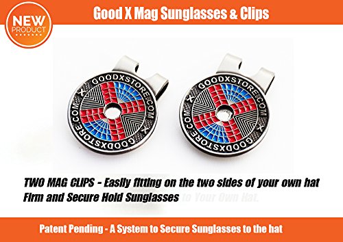 TWO MAG CLIPS - Easily fitting on the two sides of your own hat; Firm and Secure Hold Sunglasses to Your Own Hat. Good X Mag Sunglasses and X Mag Hat use a strong, discretely integrated magnetic system providing worry-free for sunglasses!