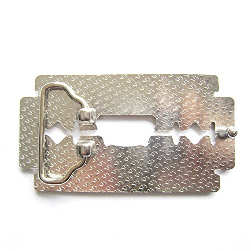 Binding : Apparel Product Description New Bright Silver Shaved Razor Blade Belt Buckle Gurtelschnalle Boucle de ceinture Brand New In Stock Only Buckle No Stand SKU:BUCKLE-OC034 Material:Zinc Alloy Heavy Metal Bright Silver Plated Color Ship to worldwide Both Safety Material and Plating by Lead Free Length Size is, 3.9 inches, Height Size is, 1.93 inches, Weight is 3.21 oz Length Size is, 99 mm, Height Size is, 49 mm, Weight is 91 g The inner diameter for back loop is, 1.58 inches (40 mm), fits belt up to 1.58 inches (40 mm) Width Button Snap On Belts All of our buckles is fitting to all of our Button Snap on Belts you could please choose your favorite belt in our store 0