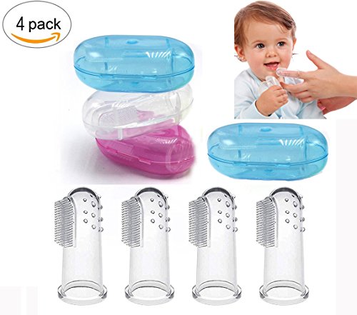 -. Title : Baby Finger Toothbrush (4 PCS),CHFUN Baby Food Grade Silicone Toddler Toothbrush With Case Set Oral Massager Christmas Gifts for Infant &Toddlers, Toothbrush Teether