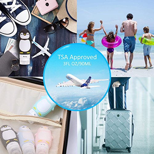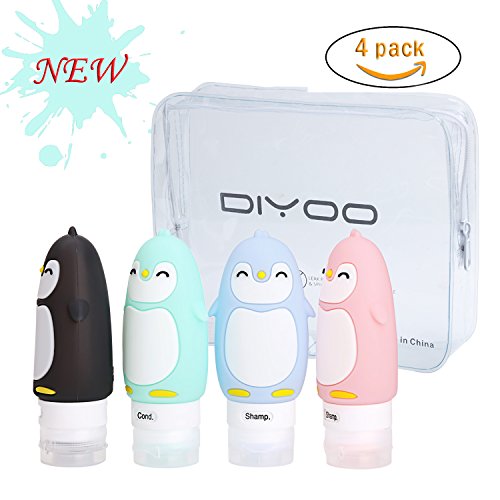 【Portable Travel Bottles】: Four silicone containers with a small plastic bag with zipper closure. You can fill the containers with items such as shampoos, soap, cosmetics, and other liquid usually stored in big bottles that cannot go on flights or you do not want to travel with.
